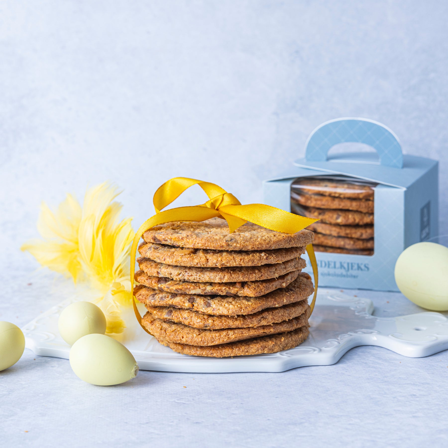 Mandelkjeksen vår er utrolig populær. Den var også en av finalistene i Det Norske Måltid 2024. 280 gr velsmakende kjeks med biter av sjokolade og mandler. Kjeksen er glutenfri.